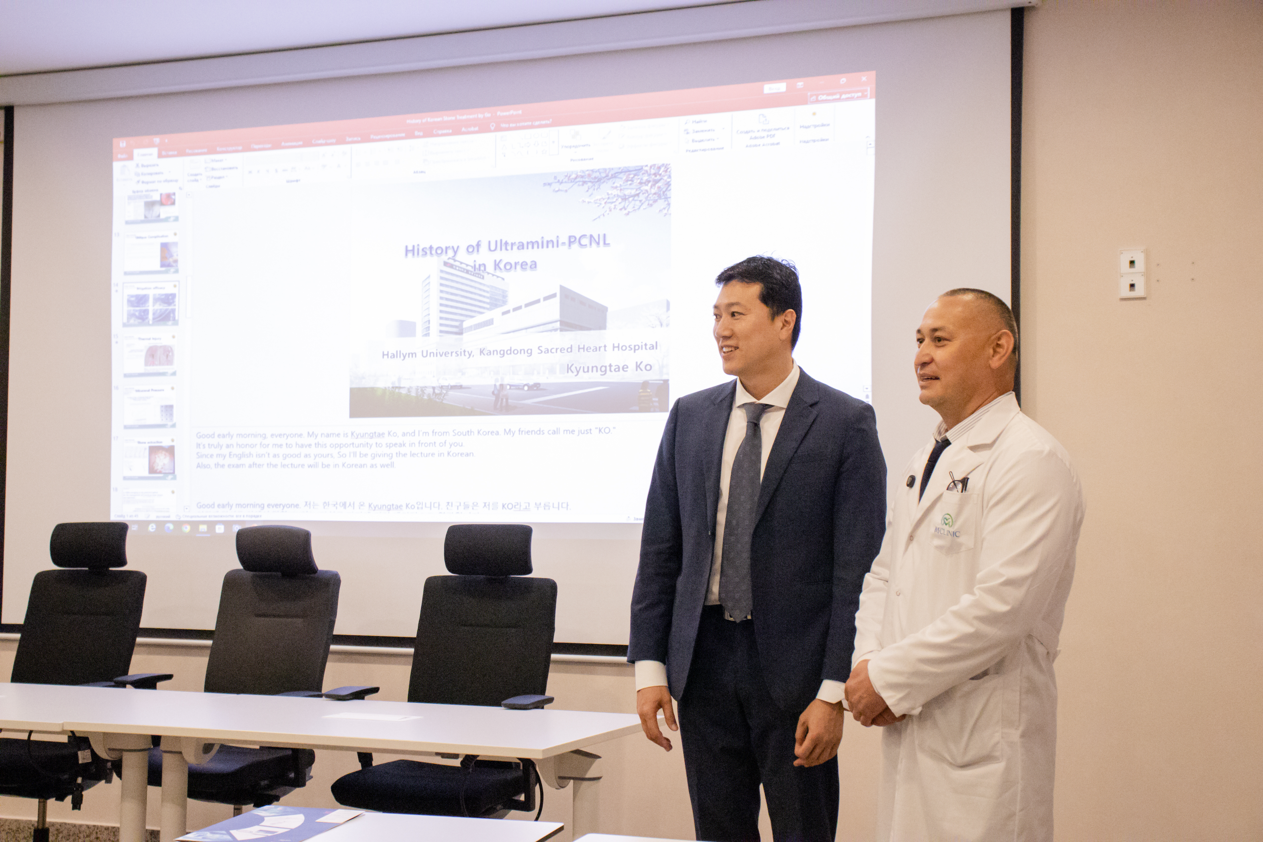 Профессор Ко представил подробный доклад об истории и эволюции лечения мочекаменной болезни в Южной Корее. Совместная работа иностранного эксперта и нашего доктора Муроджона Абдуллажанова позволила детально разобрать сложные клинические кейсы. M-Clinic подтвердила статус центра, где мировые медицинские наработки внедряются в ежедневную практику без задержек.